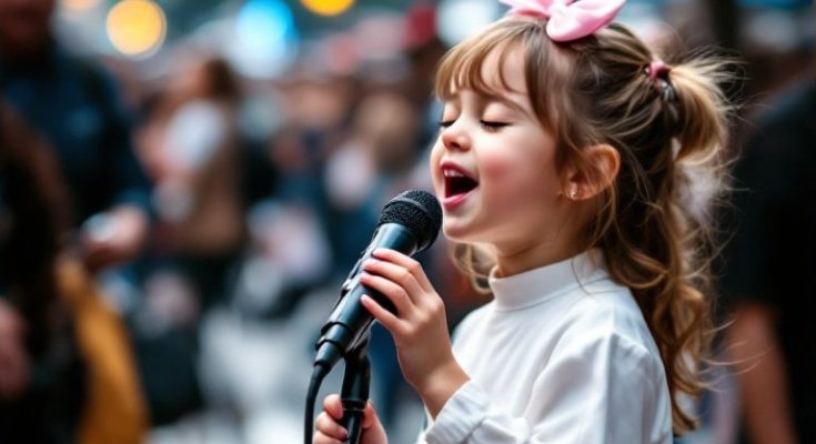 It was a typical afternoon in the city—buskers playing guitars, street vendors calling out their deals, tourists snapping photos. Among the noise and movement, a young girl stood on the corner, gripping a microphone. She looked out at the crowd, her face calm but determined.