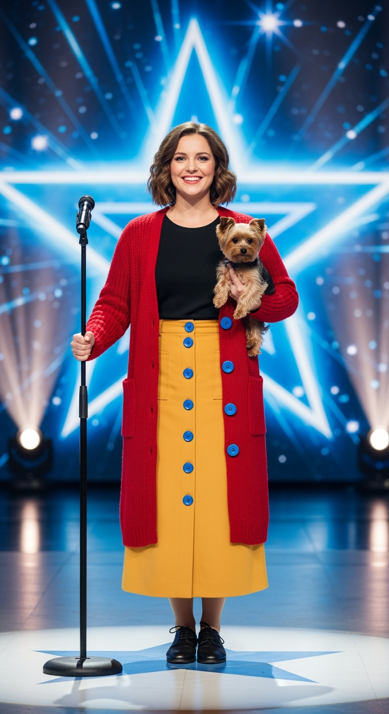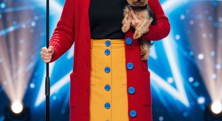 America’s Got Talent has seen its fair share of unique acts, but Pam and her dog Casper delivered something completely original. Walking onstage with a bright smile and her furry companion in her arms, Pam was ready to prove that music isn’t just for humans. Dressed in a vibrant red cardigan, mustard skirt, and sunny yellow flats, she exuded warmth before even singing a note.