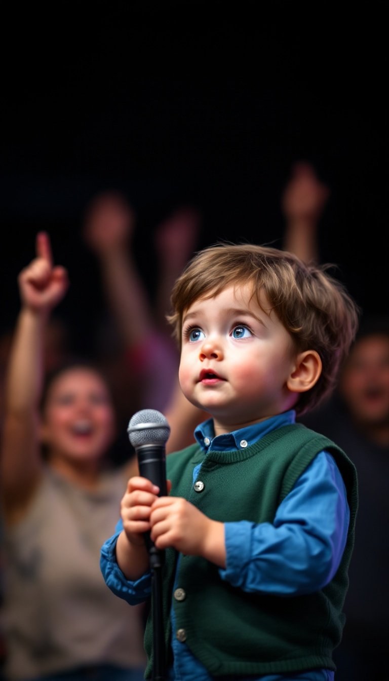 The crowd had gathered, expecting the usual performance. The stage was set, and a quiet murmur rippled through the audience as the next act was introduced. They were ready for something average, maybe a small act to pass the time. What they didn’t expect was the 1-year-old boy who waddled up to the microphone, holding it with a grip that seemed far too strong for someone so young.